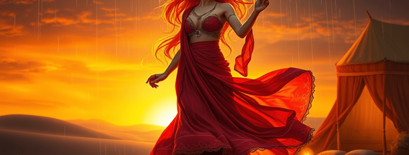La danzatrice si alza in piedi con un solo fluido, morbido movimento e agitando dolcemente il tintinnante tamburello con passo ondeggiante si reca al centro della pista, si inchina ai presenti fino a sfiorare la sabbia con la rossa chioma, poi inizia a muovere i fianchi al ritmo profondo dei tamburi. Nell'aria un vago … Leggi tutto Danza del Deserto Fiorito