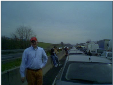 Mezz’ora? Al Km 42.78 la Ka si ferma definitivamente… ma non per colpa sua; un paio di Km avanti un tir ha perso il carico di legname e l’autostrada è bloccata in tutti e due i sensi.