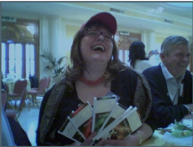 Io che non ho libri della Yarbro con me chiedo a Rick di scrivermi un dedica sul libricino che ho stampato e rilegato io stessa del suo Coccige da Vinci, in finale al Premio Italia. Valla, che è la generosità personificata mi regala un Cosmo Ponzoni e i Galaxy 8 e 10 tanto ben conservati che sembrano appena usciti dalla tipografia.