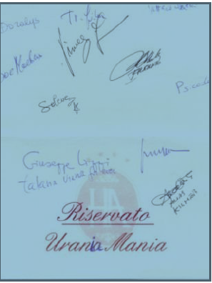 La serata di Fiuggi sta per finire, il ristorante si è svuotato , restiamo solo noi di UM, faccio girare il cartellino con su scritto “riservato a Uraniamania” per avere la firma di tutti e a quel punto considero terminate le mie incombenze di Admin.