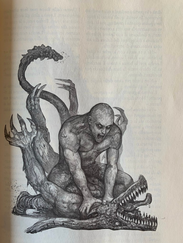 Peccato! un bel tomo curatissimo, una copertina vellutata, elegante, nera con scritte in oro disseminata di rune lucide, carta non troppo sottile color burro, due colonne a pagina per una lettura comoda e veloce ma… a pagine 1024 e 1025 il testo è invertito. Ci sono solo un paio di refusi e quello va bene ma per trentacinque euro mi aspetto accuratezza. In compenso sono numerosissime e molto belle le illustrazioni di Dominik Broniek ed è utile per seguire i tanti viaggi la mappa di Ashton.
